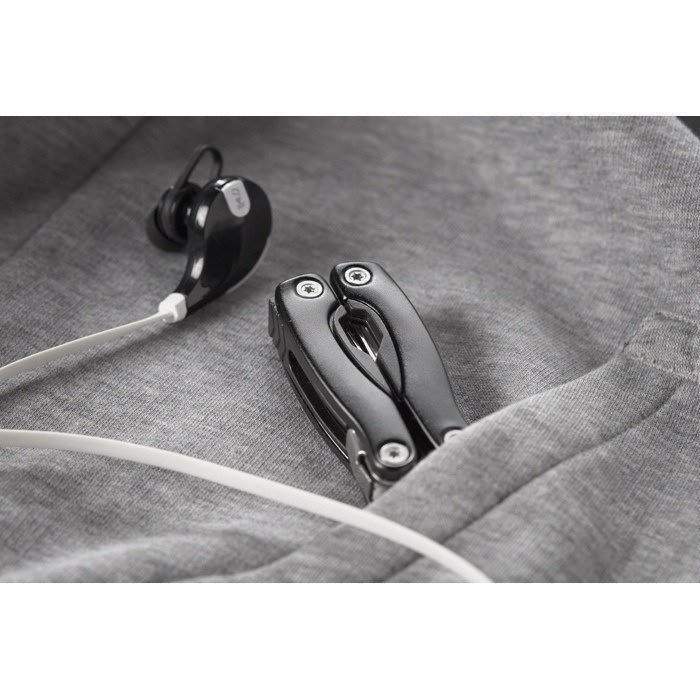 Cet ensemble d’outils personnalisés comprend des pinces, présentées dans une pochette avec le logo imprimé, qui cachent d'autres outils utiles.