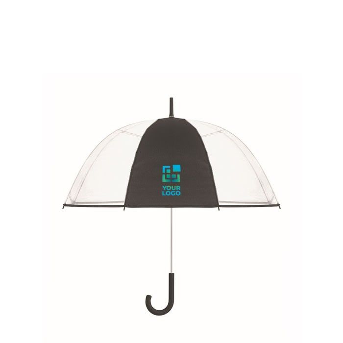 Parapluie transparent élégant, poignée caoutchouc, idéal cadeaux d'affaires.
