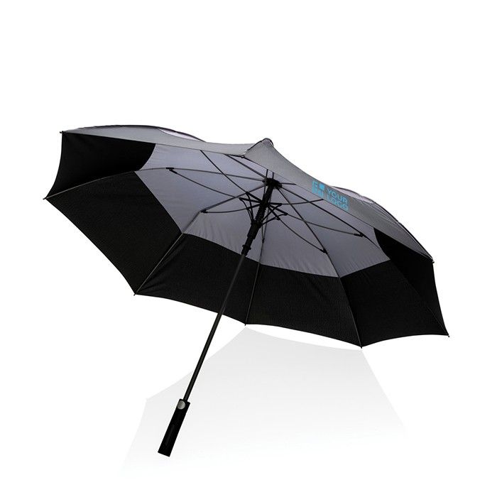 Parapluie anti-tempête recyclé, résistant, personnalisable pour entreprises.