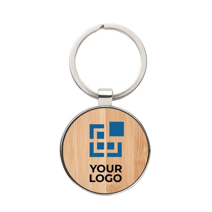 Élégant porte-clés rond en zinc et bambou imprimé Bamboo Round