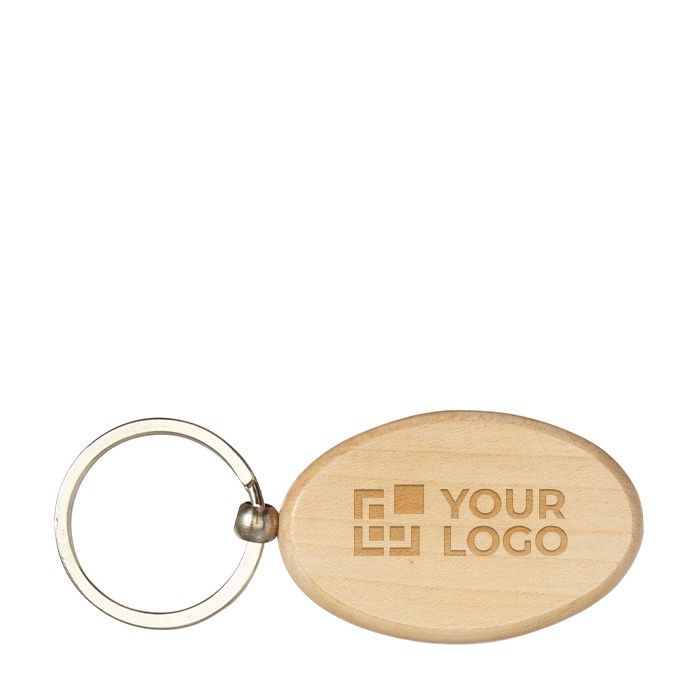 Porte-clé en bois gravé ovale avec anneau métallique OvalWood