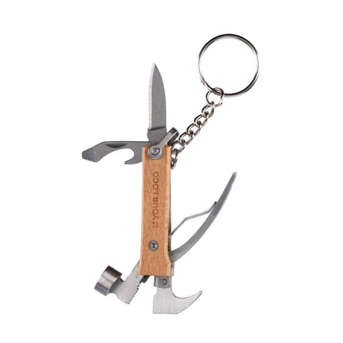 Porte-clés en bambou avec fonction multi-outils en forme de marteau