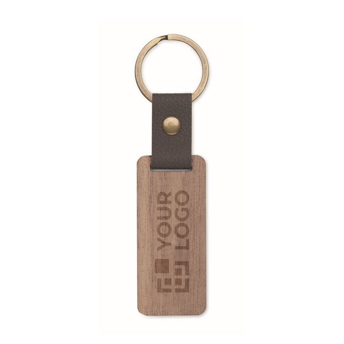 Porte-clés rectangulaire en bois avec un détail en simili cuir