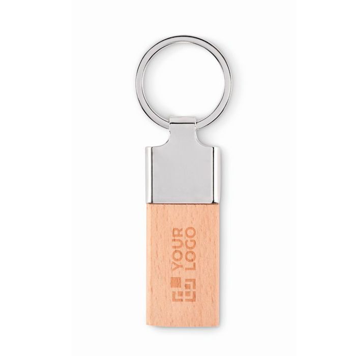 Porte-clés rectangulaire en bois de caoutchouc et zinc