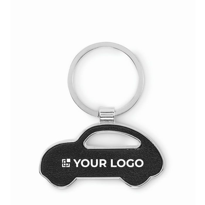 Porte-clés métallique forme de voiture incrustation cuir synthétique