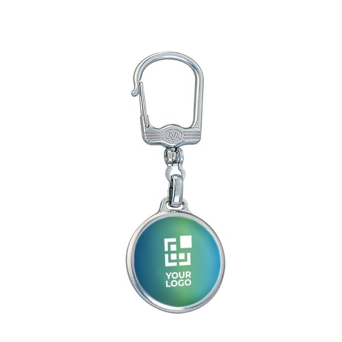 Porte-clés circulaire en métal, double marquage pour visibilité maximale.