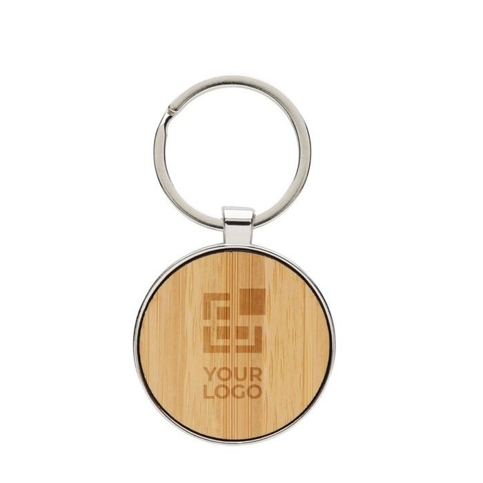 Porte-clés rond en bambou et alliage de zinc recyclé