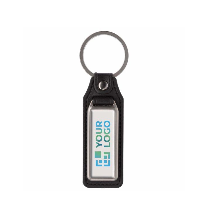 Porte-clés rectangulaire en métal avec mousqueton et cuir synthétique