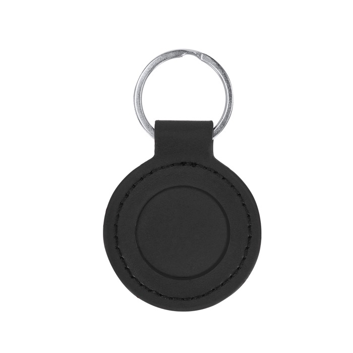 Porte-clés métallique avec revêtement en PU et coutures assorties, ajoutant une touche d’élégance grâce à sa finition miroir et son anneau chromé.