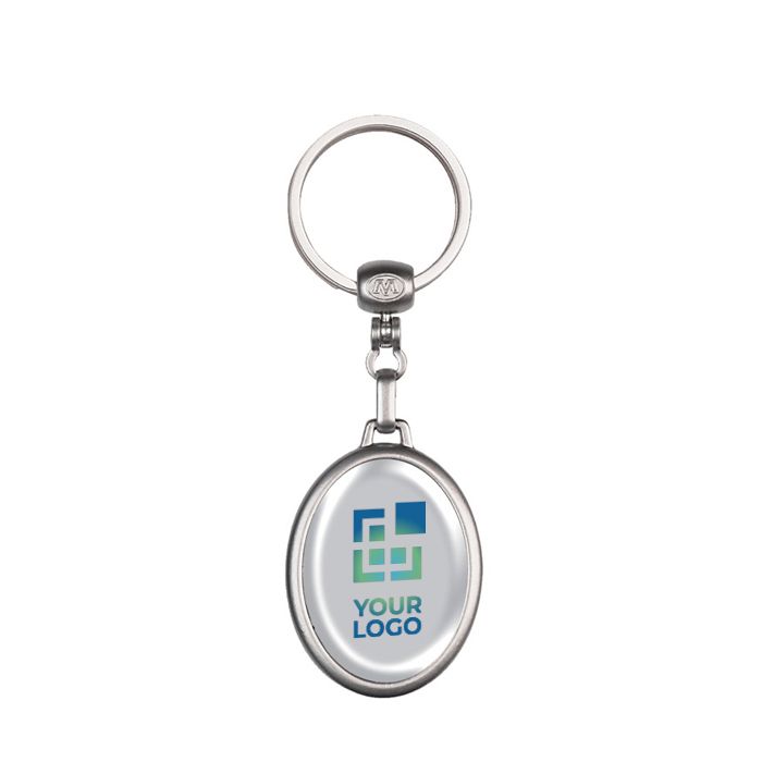 Porte-clés ovale en métal personnalisable, élégant et double face.