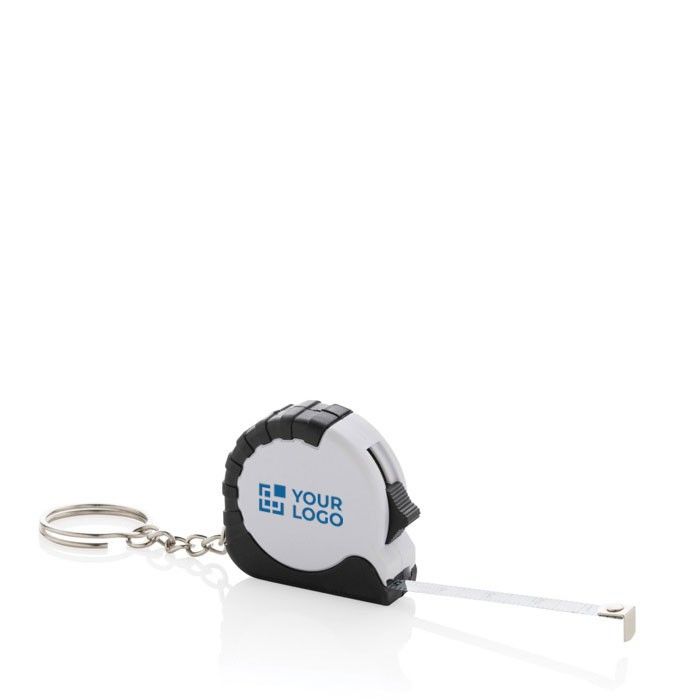 - Outil multifonction idéal pour vos clients : porte-clés et mètre ruban intégré d’un mètre.