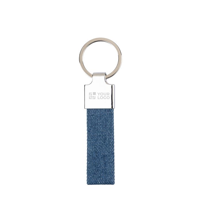 Porte-clés en zinc personnalisable avec touche élégante tissu jean.