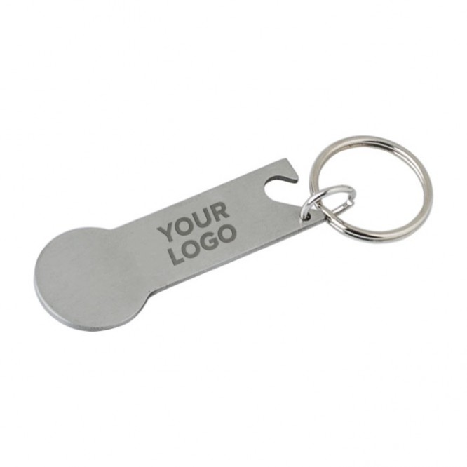 Porte-clés multifonction pratique avec ouvre-bouteille et pièce intégrée.