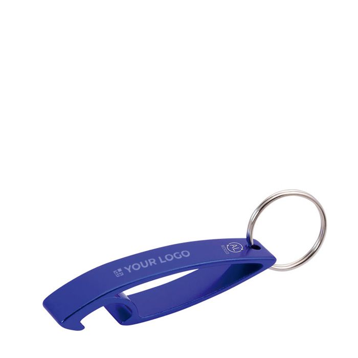Porte-clés décapsuleur en aluminium recyclé, pratique et durable.