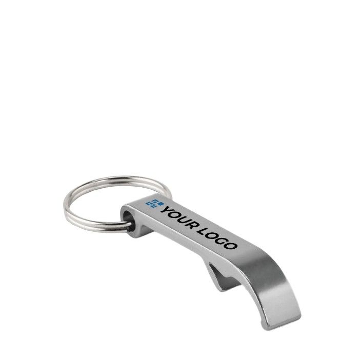 Porte-clés décapsuleur en aluminium recyclé, pratique et durable.