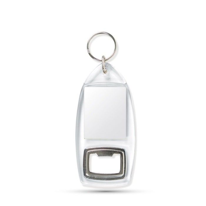 Porte-clés capsule en acrylique. Personnalisé avec insertion de papier sur 2 côtés (32x40mm) et couverture en acrylique. Ce produit est vendu en multiples de 50.