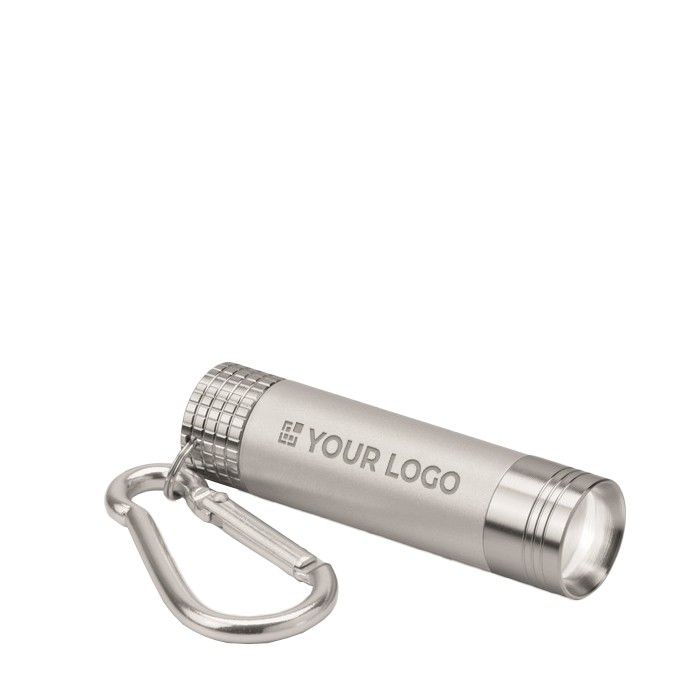 Lampe torche aluminium avec logo lumineux et mousqueton