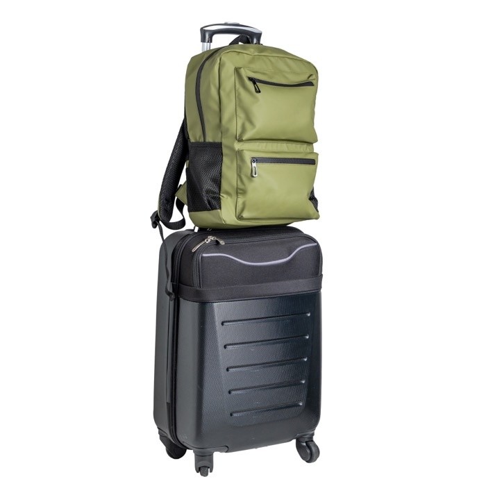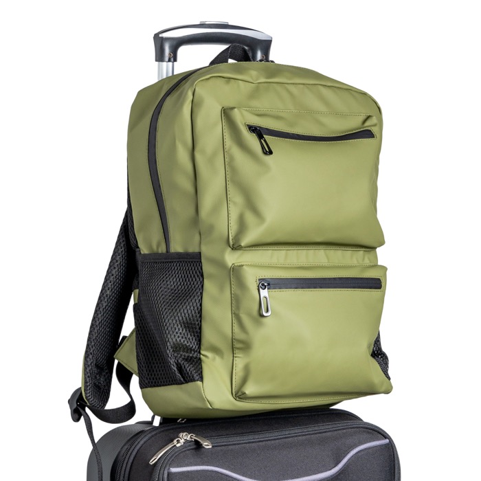Sac à dos en PU souple pour ordinateur portable avec deux poches frontales, conçu pour un usage quotidien ou les voyages. Fabriqué en similicuir souple, il allie fonctionnalité, style et sécurité. Il dispose d’un compartiment principal avec séparateur rembourré pour ordinateurs portables jusqu’à 15,6”, 2 poches frontales saillantes, 1 poche antivol, 2 poches latérales en mesh pour un accès facile aux accessoires comme un parapluie ou une bouteille, et 1 poignée pour fixation sur trolley. Disponible en vert olive et bleu marine, il offre la combinaison parfaite de style, confort et praticité.
