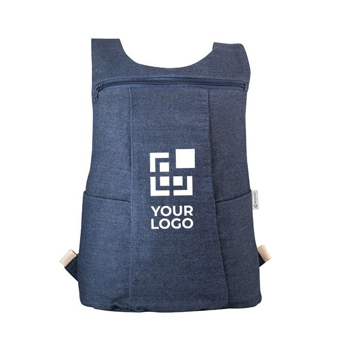 Sac à dos en denim avec logo, poches frontales et bretelles 300 g/m²