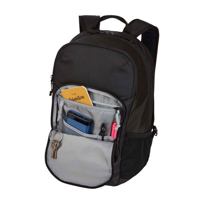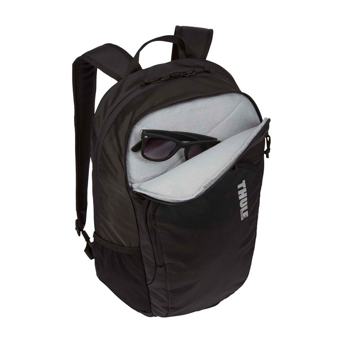 Sac à dos pour ordinateur Thule Achieve offrant protection maximale et organisation quotidienne. Housse rembourrée SafeEdge protégeant portables jusqu’à 15,6’’ ou MacBook 15’’, compartiment indépendant tablette 10,1’’. Objets précieux (lunettes, téléphone) sécurisés dans poche extérieure rembourrée doublure douce et fermeture éclair. Poche accès rapide zippée, poche filet intérieure avec compartiment stylo et porte-clés, plus deux poches latérales en filet pour bouteilles ou accessoires. Panneau dorsal rembourré canaux d’aération et anses bandoulière assurant confort constant.