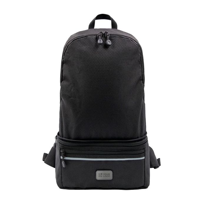 Sac à dos en polyester recyclé, résistant à l'eau pratique.