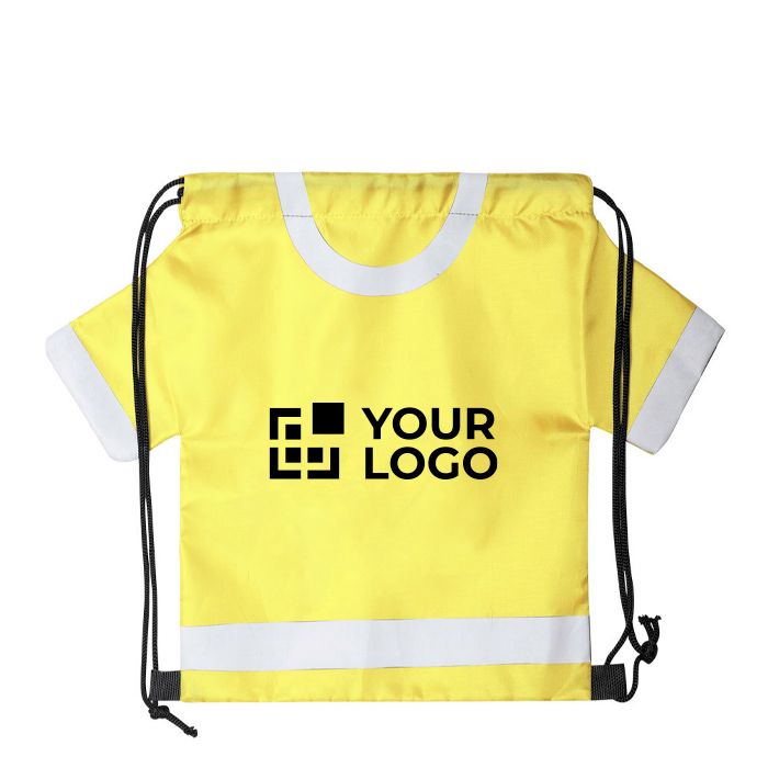 Sac à cordons T-shirt en polyester, idéal pour enfants actifs.