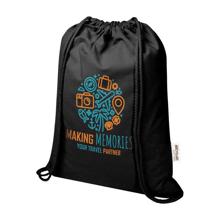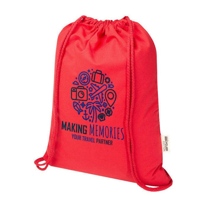Sac à cordon fabriqué avec 60 % de coton recyclé certifié GRS et 40 % de PET. Léger, économique et facile à porter sur le dos ou à l’épaule, idéal pour les campagnes marketing ou pour promouvoir votre marque. Tissu de 140 g/m² garantissant résistance et durabilité, tandis que le cordon facilite l’ouverture et la fermeture. Dispose d’un grand compartiment principal avec fermeture par corde en coton et suffisamment d’espace pour logos ou messages. Les imprimés disponibles sont certifiés GRS, assurant une chaîne d’approvisionnement transparente et certifiée. Fabriqué en Inde. Résistance jusqu’à 5 kg. Capacité : 5 litres.