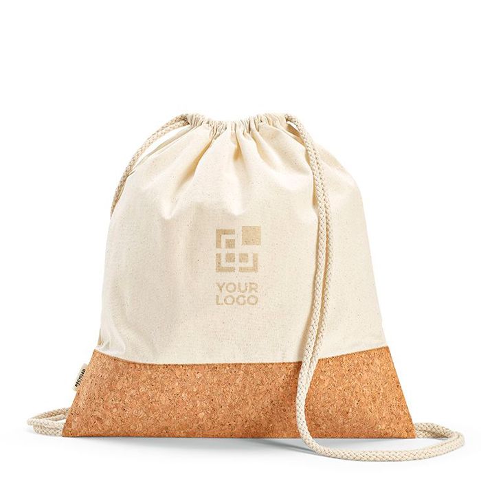 Sac cordon en coton recyclé à base en liège 180 g/m²