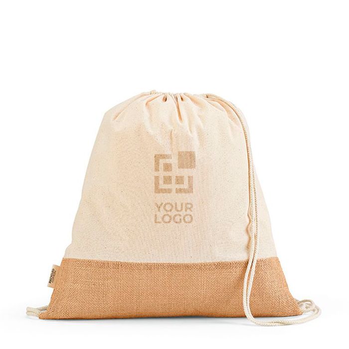 Sac cordon en coton recyclé à base en jute 180 g/m²
