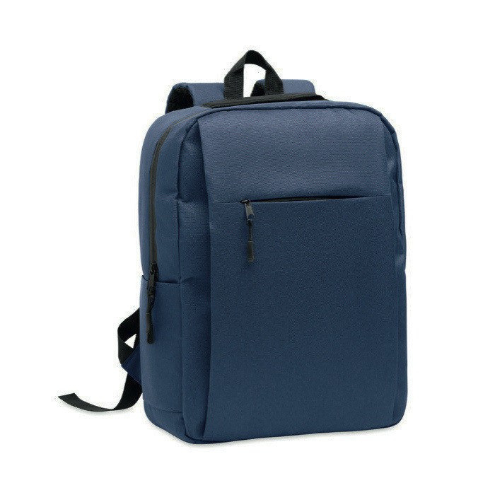 Sac à dos en polyester 600D RPET et doublure 210D. Avec un compartiment pour ordinateur de 15 '', une poche extérieure zippée pour tablette 10 '', 2 poches internes, 2 poches internes pour stylos, une poche frontale zippée. 2 poches latérales. Dos et bretelles rembourrés.