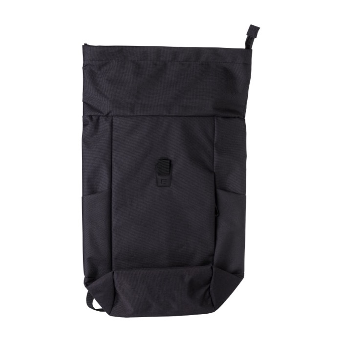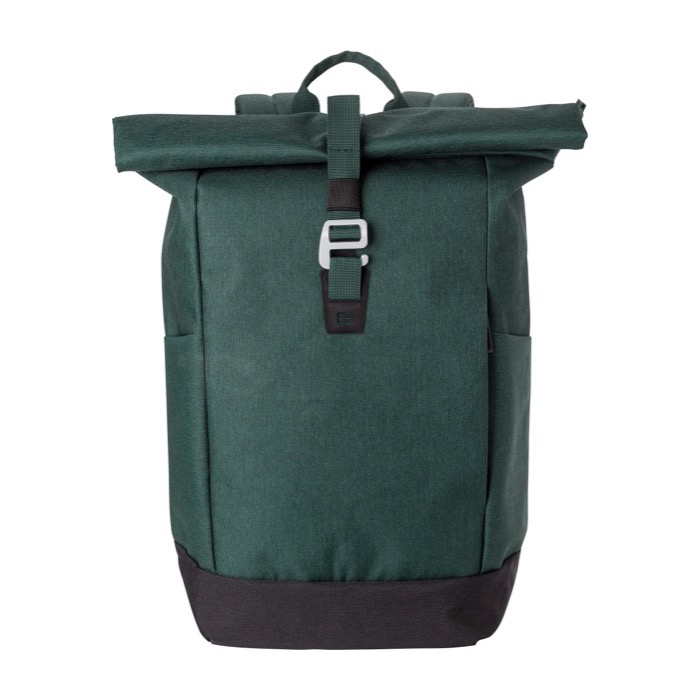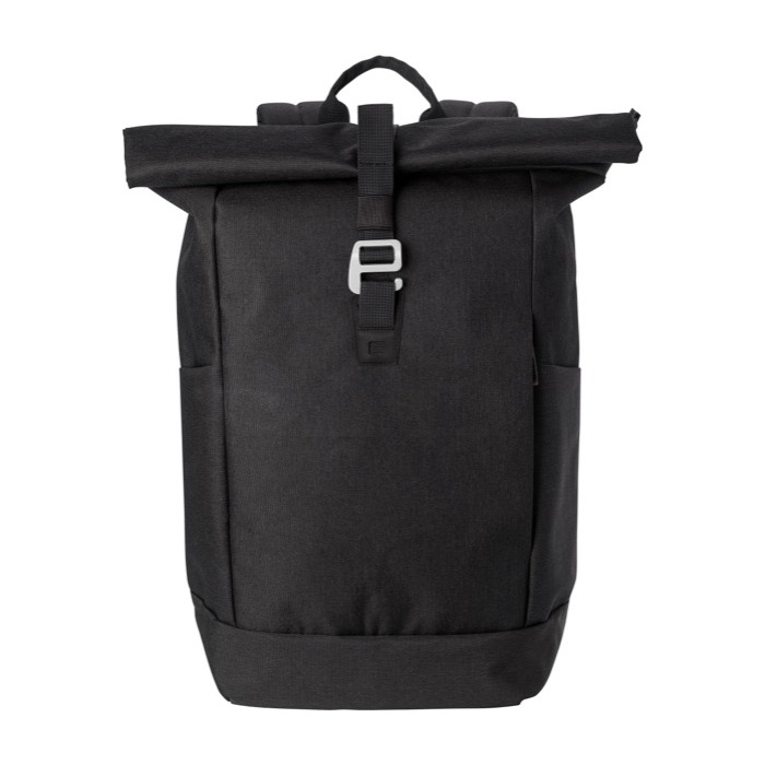 Sac à dos roll-top porte-ordinateur de 15'' en polyester 600D avec poche frontale zippée et fermeture par boucle.