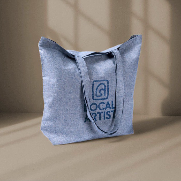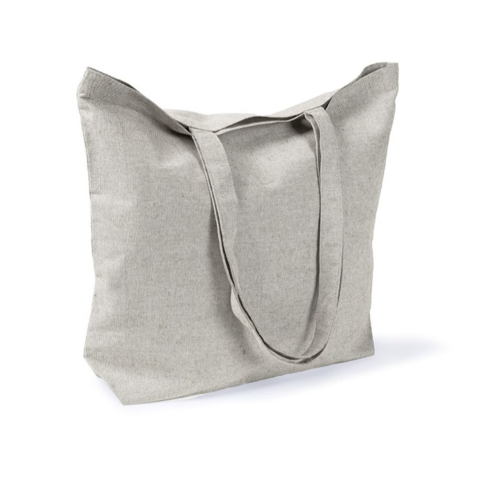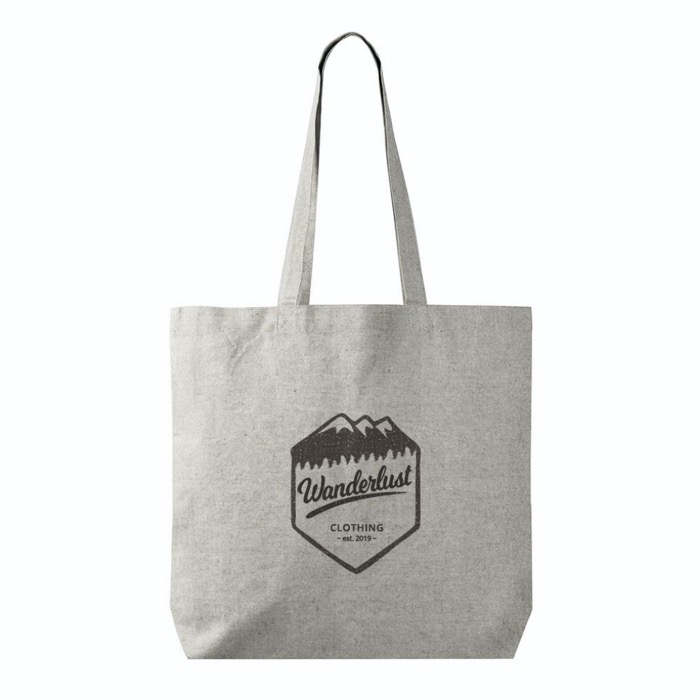 Sac en coton et polyester recyclés de 220 g/m², avec certification REACH, qui valorisera positivement votre entreprise lorsque vous l’offrirez lors d’un salon.
