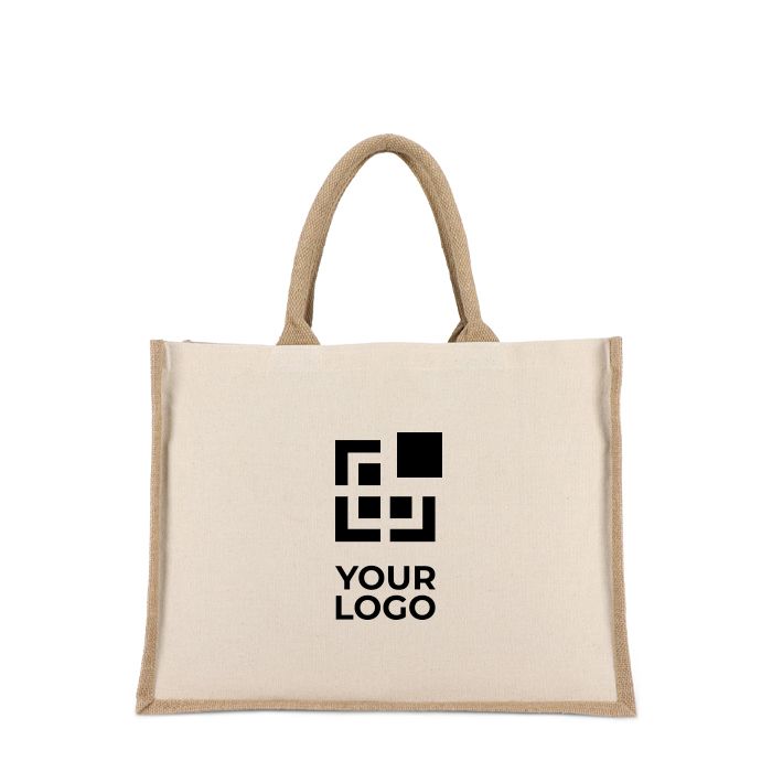 Sac en coton avec logo avec côtés et fond en jute 320 g/m²