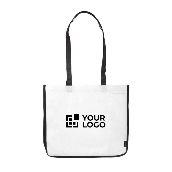 - Matière non-tissée laminée résistante, avec côtés blancs personnalisables pour une visibilité optimale de votre logo.