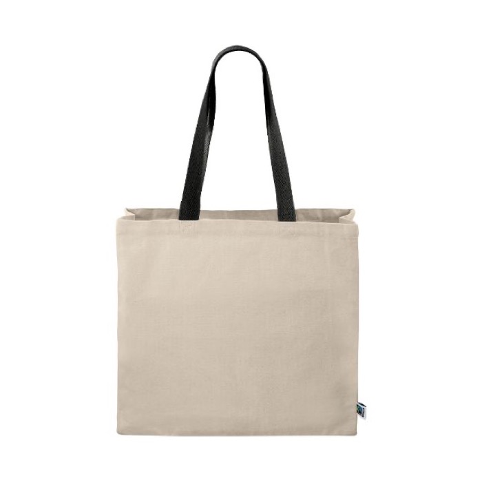 - Confectionné en coton Fairtrade épais 280 g/m² avec poignées longues noires pour un transport confortable et une image responsable.