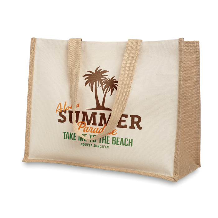 Sacs promotionnels en jute et toile avec intérieur laminé Jute Beach