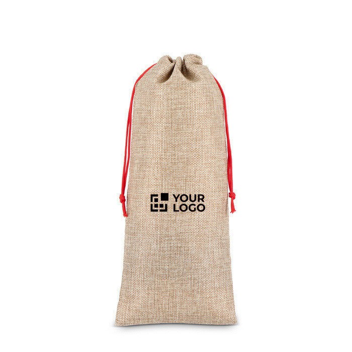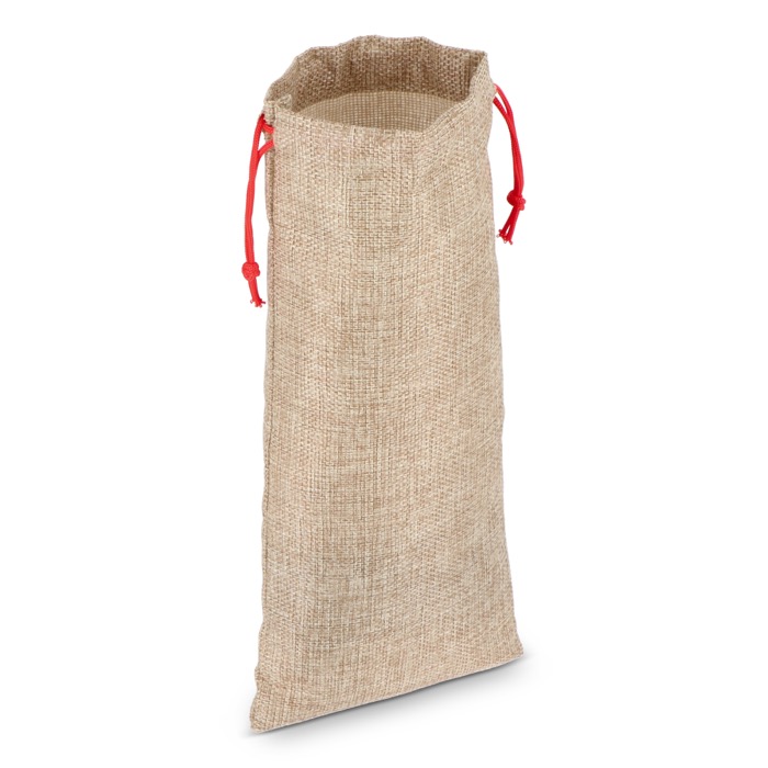 Sac à vin au design rustique en jute avec cordon de fermeture rouge