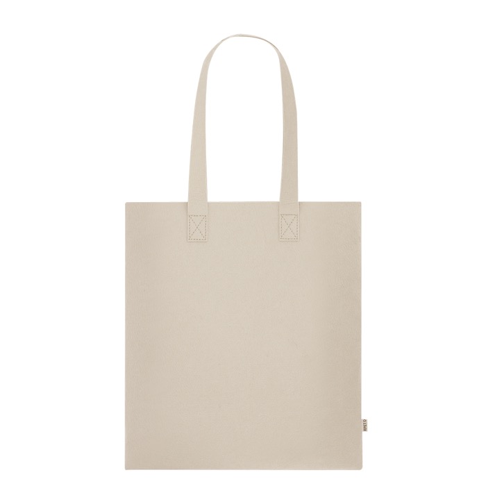 Sac en feutre recyclé, anses longues, couleurs classiques élégantes.