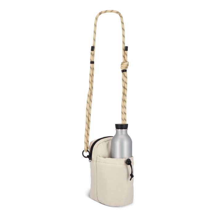 Sac pratique conçu pour transporter une bouteille de 500 ml ainsi que téléphone, clés ou portefeuille. Se transforme aussi en cordon pour téléphone.