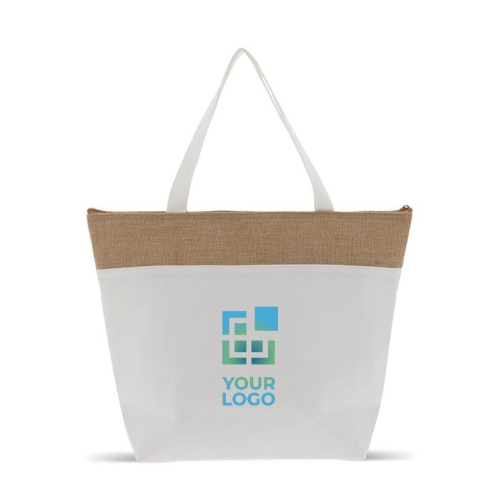 Sac glacière en coton avec détail en jute et fermeture éclair