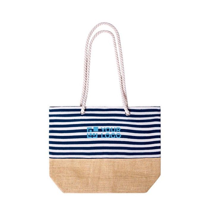 Sac de plage en coton rayé avec base en jute 450g/m²