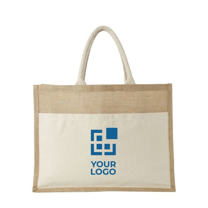 Sac cabas toile de jute personnalisable avec poche Pocket XL