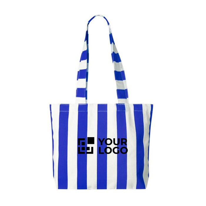 Sac de plage rayé en coton recyclé, personnalisable pour entreprises.