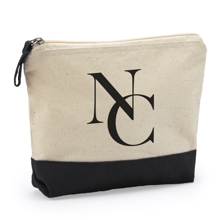 Trousse multi-usages en coton 280 g/m², finition bicolore et fermeture éclair avec tirette en coton assorti.