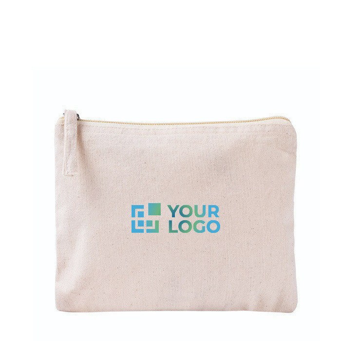 Trousse plate en coton biologique de 180 g/m², dont le point fort est son design minimaliste. De plus, vous transmettrez une image plus naturelle avec elle.
