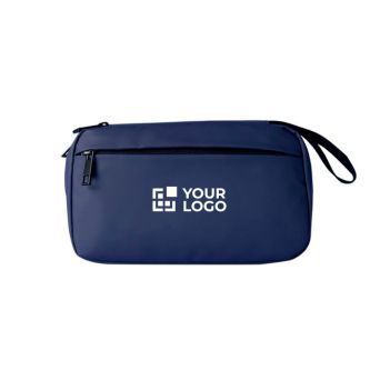 Trousse de toilette élégante en similicuir, double fermeture éclair pratique.