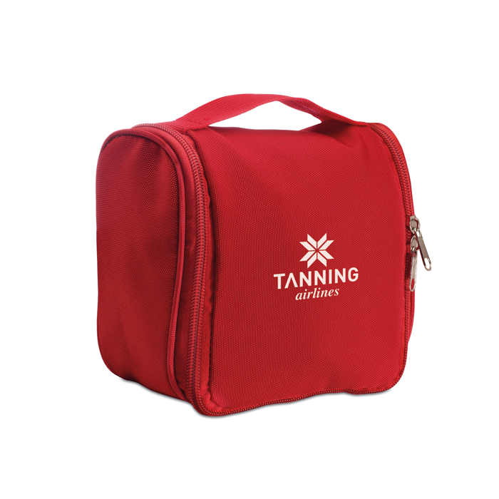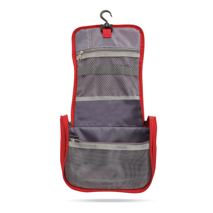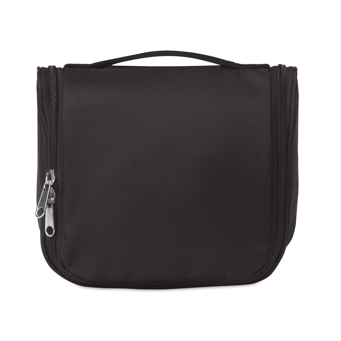 Trousse de voyage en polyester haute densité. Plusieurs compartiments et une poche en maille complètent l'équipement du sac.