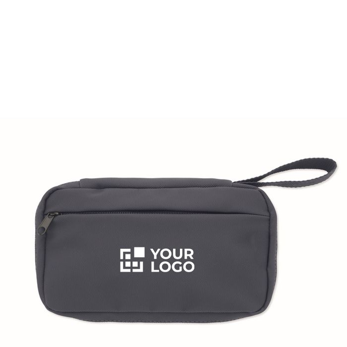 - Trousse de toilette en RPET 600D avec fermeture éclair et maille intérieure