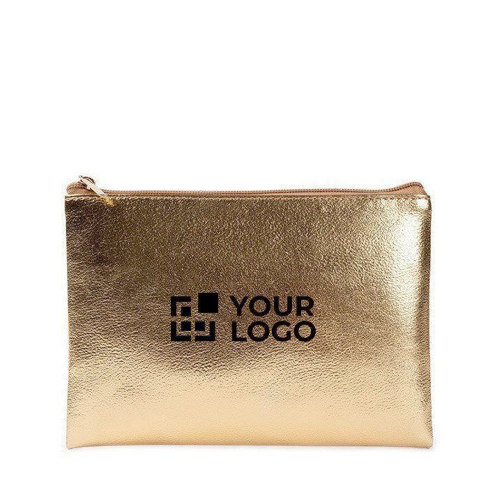 Trousse compacte en PU finition dorée avec fermeture éclair assortie