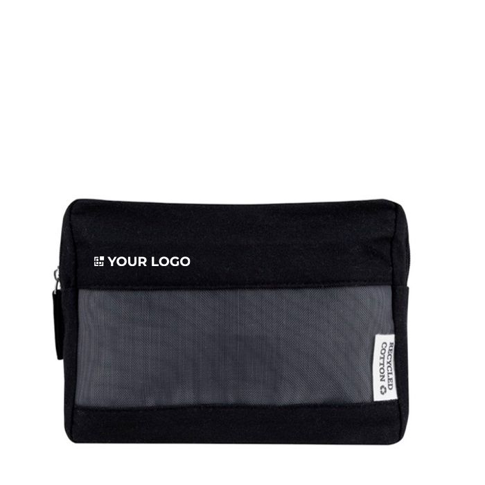 Trousse de toilette en toile recyclée avec grille sur le devant